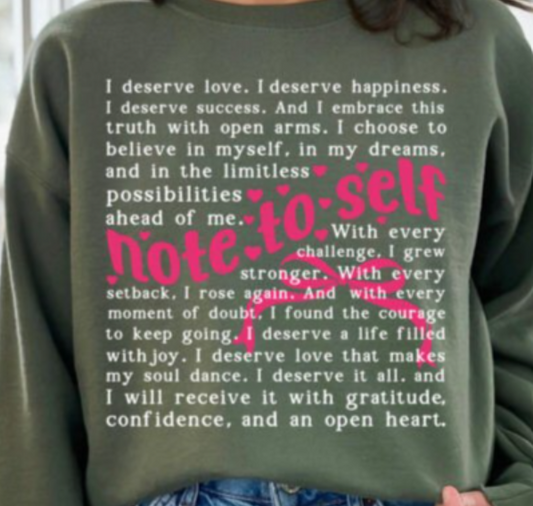 Note to Self Words DTF Transfer