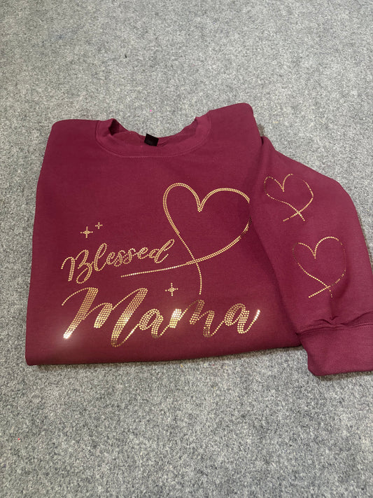 Gold Blessed Mama Spangle Transfer, Heat Transfer, Christian Transfer, Religious Shirt Design, Faith Based Bling Transfer
