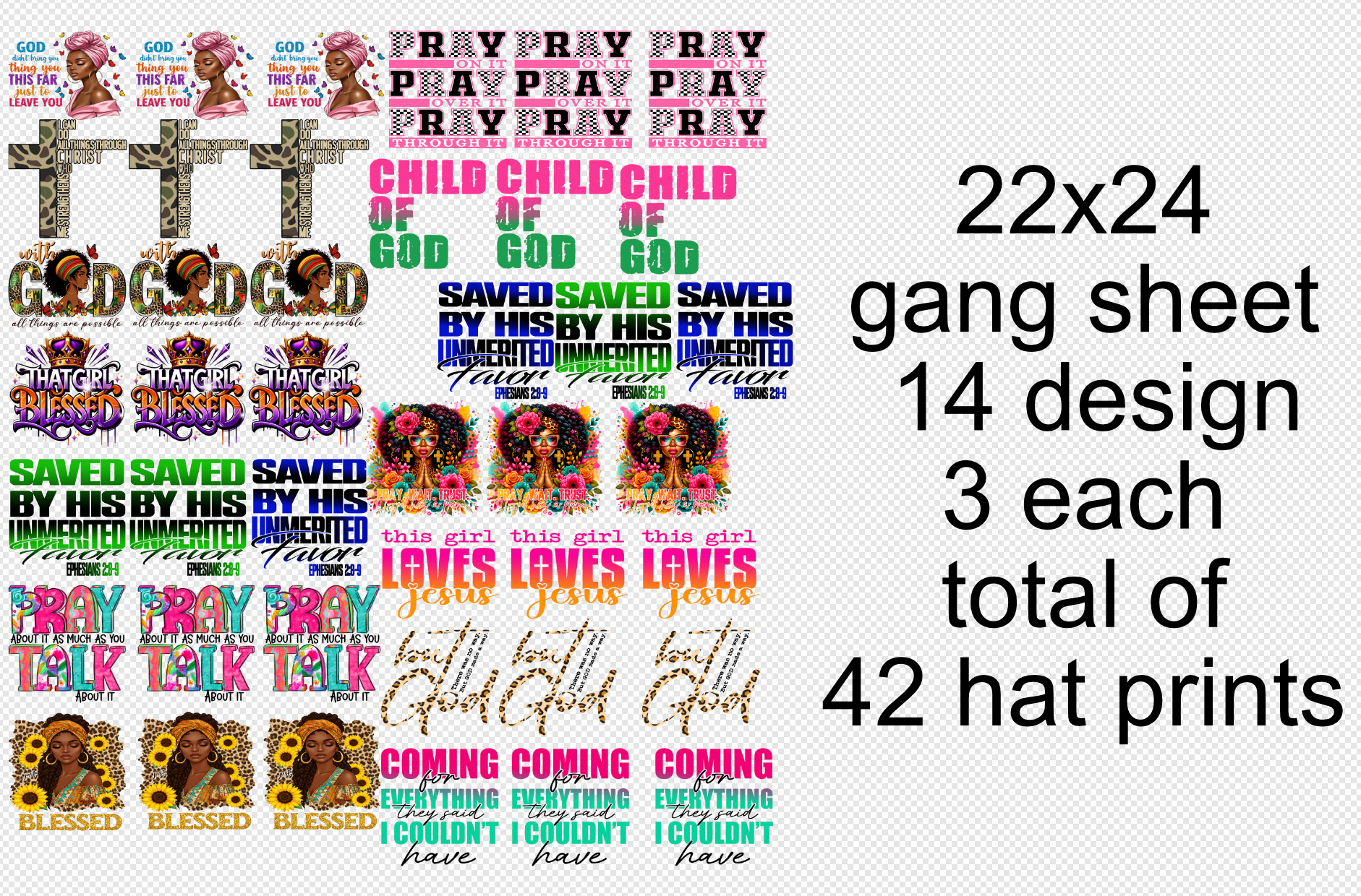 22x24 Christian Hat Prints Gang Sheet Transfer