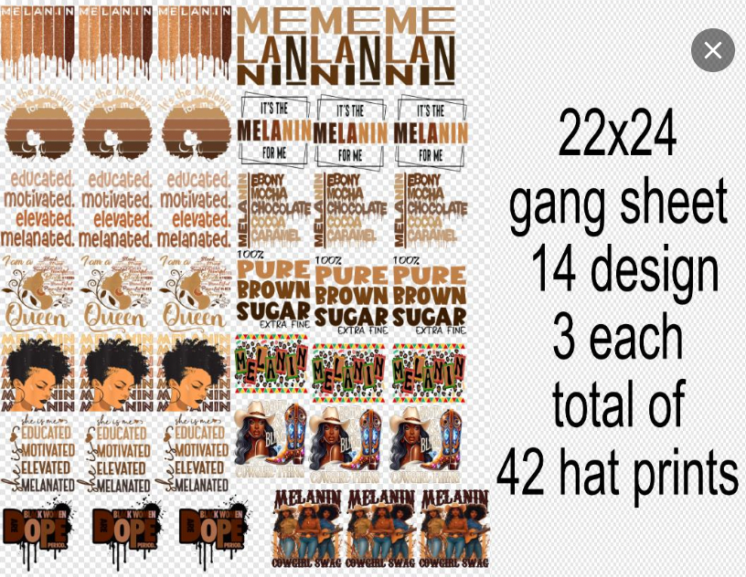 Melanin DTF Gang Sheet 22x24 + Trucker Hat Size Transfers for Just $0.58 Each a Print