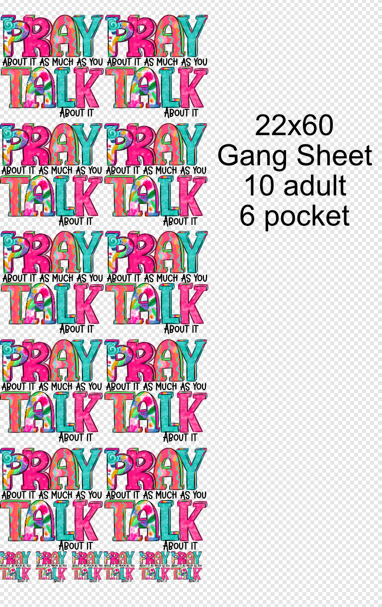 22x60 Pray About as Much as you Talk About it DTF Gang Sheet