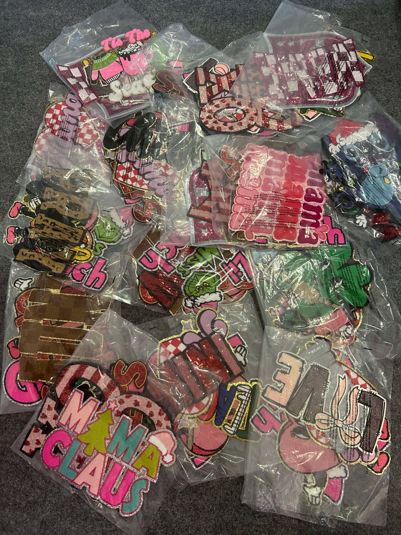 Upgrade your t-shirt business with Chenille Patch Grab Bags. Each bag contains 5 high-quality patches, including a 1 holiday preview and 4 versatile patches for everyday wear or upcoming holidays. Use a heat press to apply them - not an iron. Get each patch for only $5-$6.
