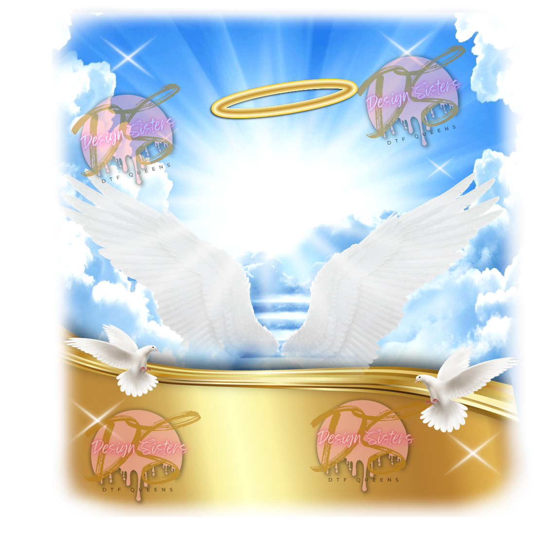 Halo with wings template, PNG Center T-shirt Design, Memorial, RIP Design, Funeral Background PNG, Sublimation, Rest In Paradise