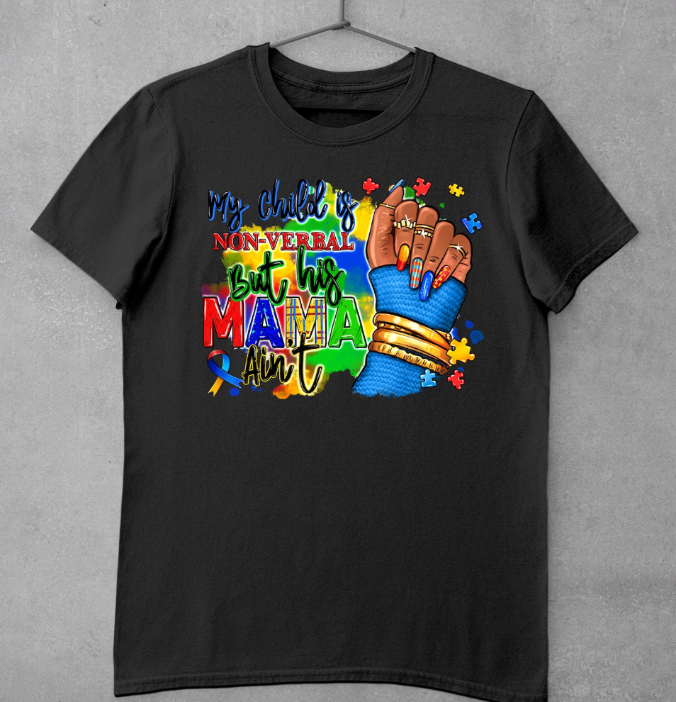 My child is non-verbal but his Mama ain't afro hand DTF Transfer