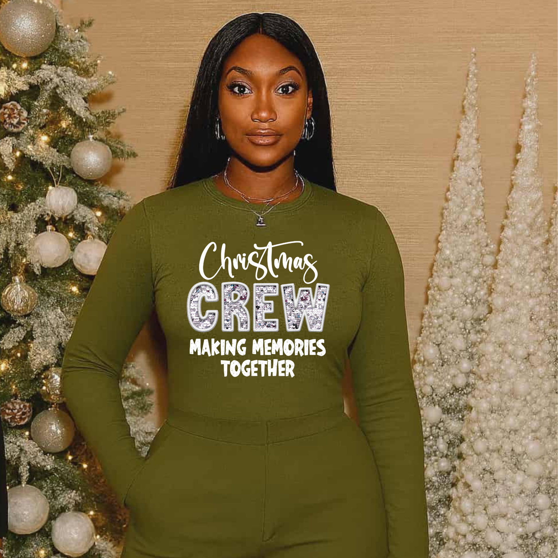 Silver Sequence Christmas Crew DTF Transfers